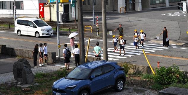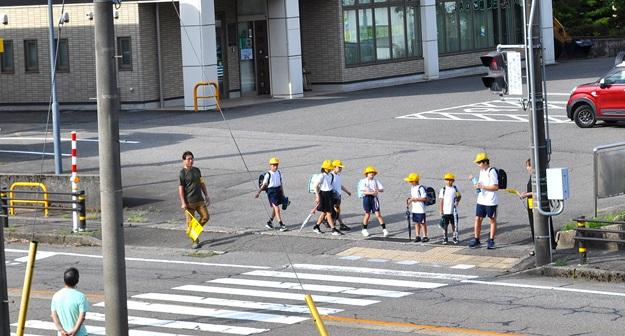 9月1日~5日まで1週間、地域の方や教育委員さんに学校前やファミリーマート近くの交差点に立っていただきました。