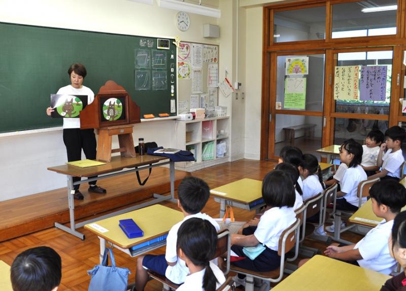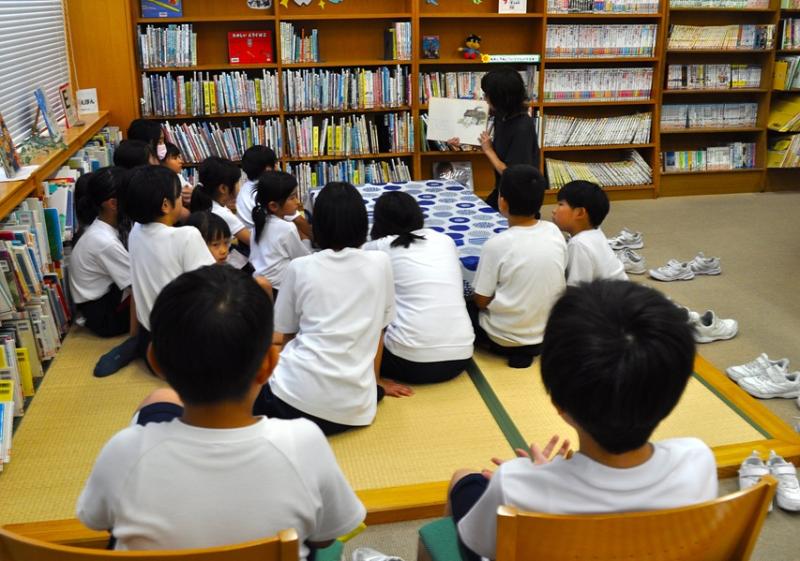 昼休みに図書室で司書の先生が読み聞かせをしてくださいました。