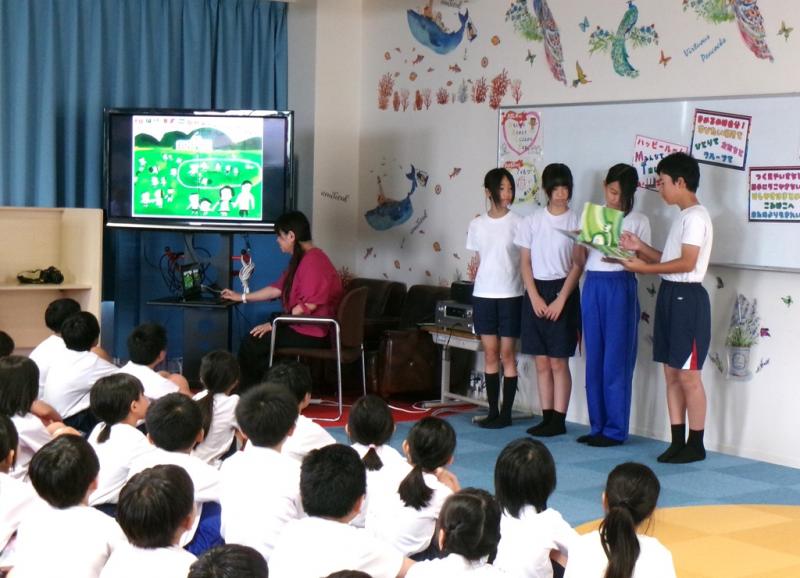 今日は平和集会を行いました。私のプレゼン➡6年生実行委員による読み聞かせ