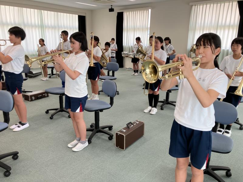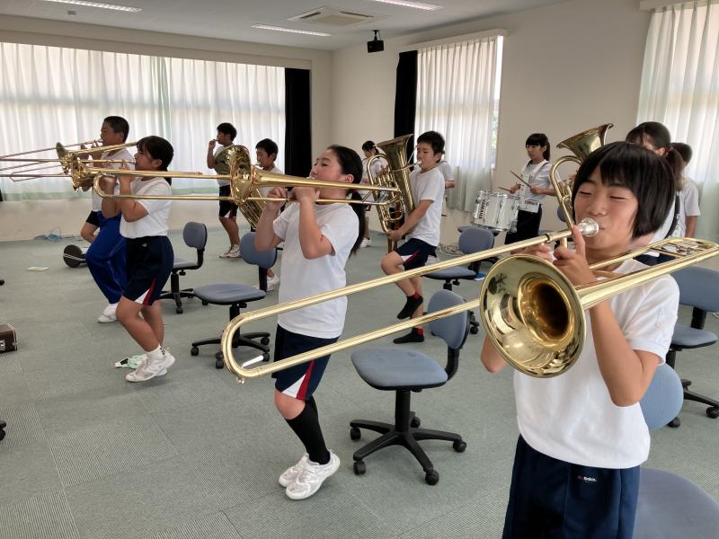 運動会に向けて、6年生のマーチング練習が本格化してきました。