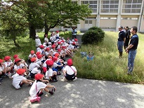 今日1,2年生がJAの方に助けていただいて「さつまいも」を植えました。雑草が生えないように、マルチシートを敷きました。水をたっぷりまいたあとにマルチシートを敷きました。秋においしいさつまいもが採れるのが楽しみですね。