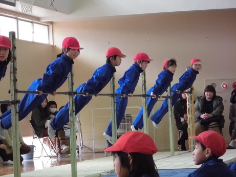 30年以上も続いている鉄棒発表会が12月7日に行われました。各学年の規定技を行ったあとに、28人の人が自由技を行いました。得意な人はもちろんのこと苦手な人も約一か月間よく頑張りました。いろんなことに挑戦していく子ども達になって欲しいと思っています。