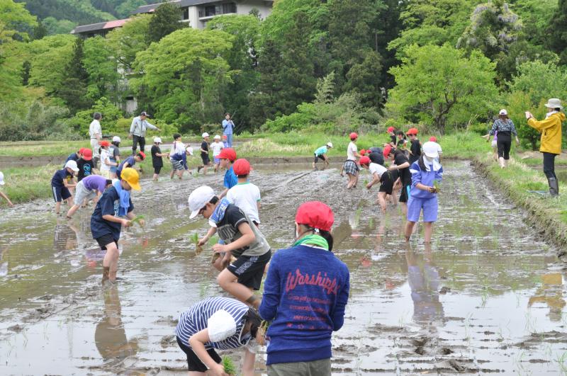 5月9日に山中小学校の5年生と一緒に田植えの体験をさせていただきました。