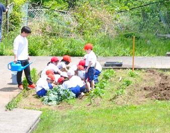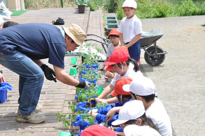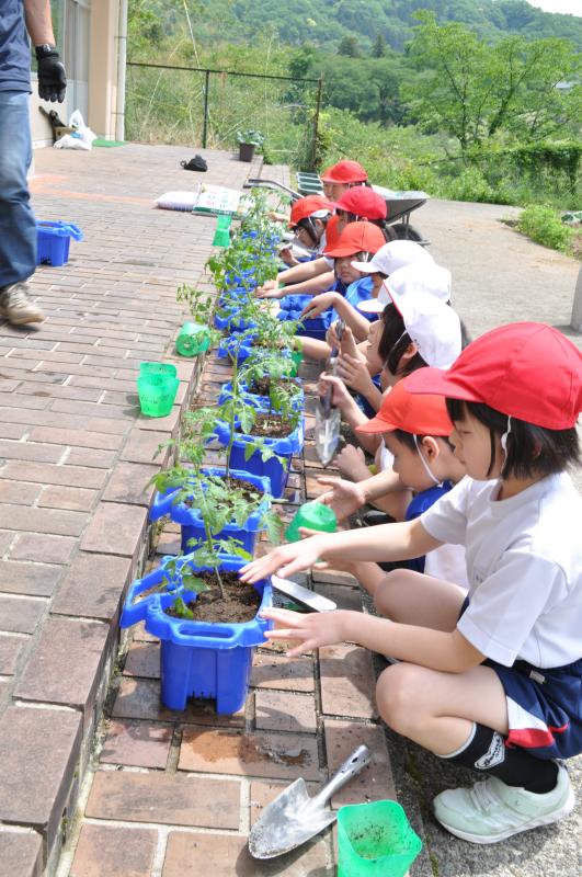 2年生が5月14日(水)に地域の野菜作りの先生に来ていただき、ミニトマトやきゅうり・ピーマンなどを植えました。しっかり水やりをして大きく育つといいですね。