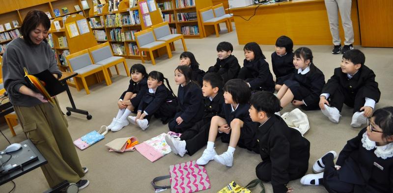 図書館司書の先生のお話&読み聞かせを楽しんだ後、図書の本を借りました!