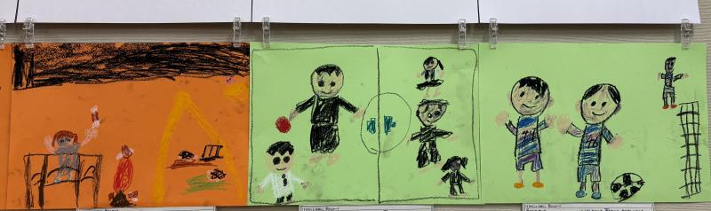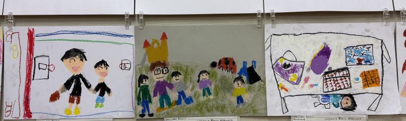 2年生は図工で、自分の「好きなこと・楽しかったこと」をかきました。