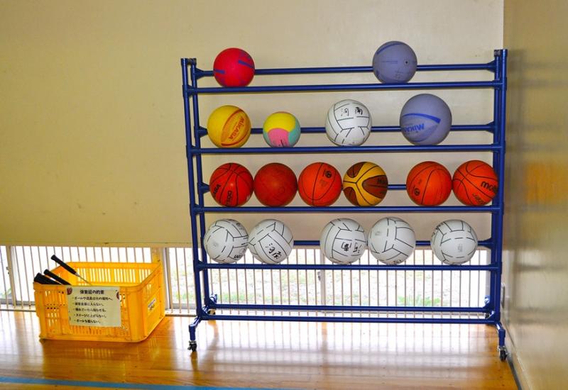 休み時間も楽しくすごすために、みんなが気持ちよく使えるようにボールラックを購入!