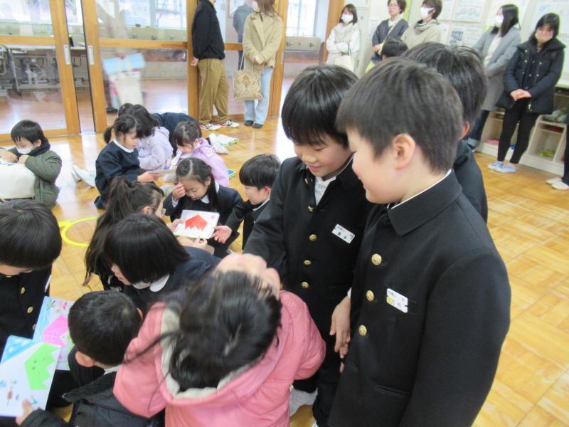 来年度入学するおともだちが学校にやってきました。1年生がお迎えして、学校を案内してくれました。