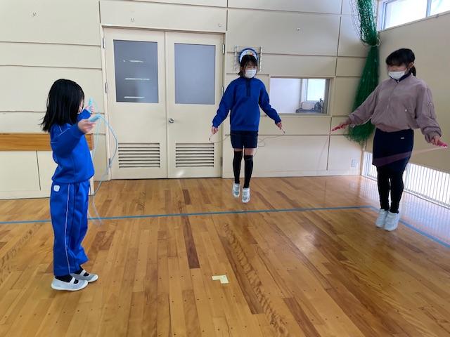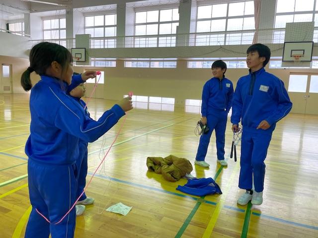 3学期になり、スポチャレいしかわの8の字跳びにも参加し、自分たちの目標記録に挑戦しています。