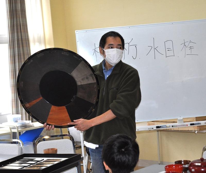 実際に道具を見せてくださったり、山中漆器ができるまでの過程や歴史などを話してくださったり…子ども達は目を輝かせながらお話を聞いていました。
