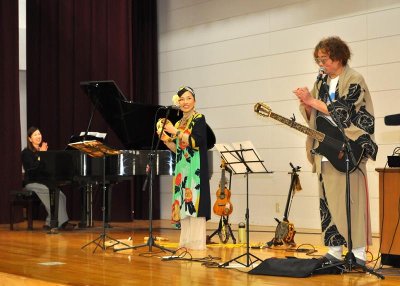 11月5日 教育ウィークに 子ども達や地域の方や保護者の方と一緒に音楽を楽しみたい!と企画しました。私のお友達(年はずっと若いですよ)の静香さんと通称チャックさんの二人組♬YECCA♧VECCA♬さんに来てもらいました~!しかも無料で!