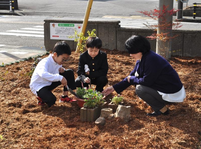 緑化推進事業で学校の玄関前がとっても素敵になりました!