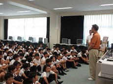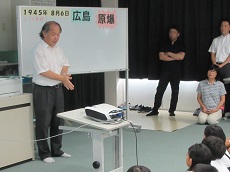 8月6日の全校登校日で、平和集会を行いました。「平和の子ら」を全校で歌った後、「原爆の子の像」に関する映像を見て平本先生からのお話を聞きました。平和について考える良い時間となりました。