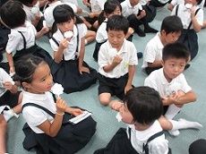 今日はおあしす集会がありました。縦割り活動を通して、運動会に向けた団の結束力を高めるのかねらいです。今回はみんなで仲良くなれるようにゲームをして遊びました。廊下でやった「ダルマさんが転んだ」はおもしろかったです。