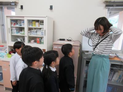 学校生活にも慣れてきた1年生。学校探検をし、学校にはいろいろな部屋があることがわかりました。「もっと学校探検」では、校長先生や図書の先生、保健の先生、事務の先生にどんな仕事をしているか、部屋にはどんなものがあるか