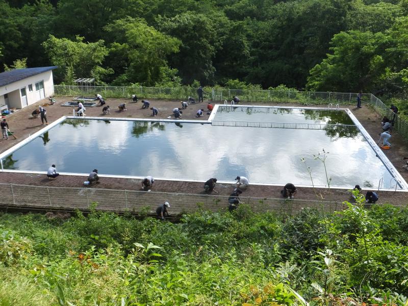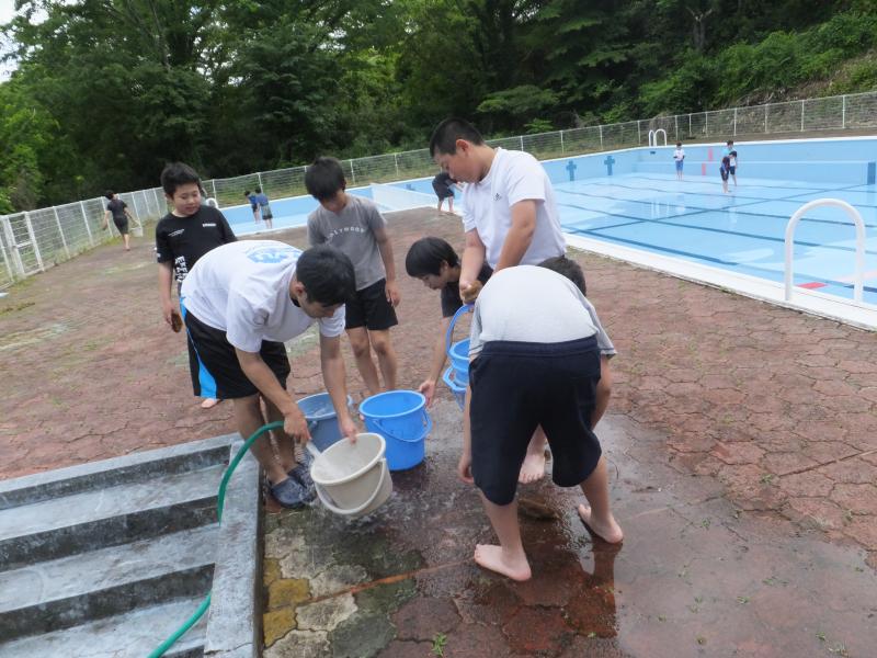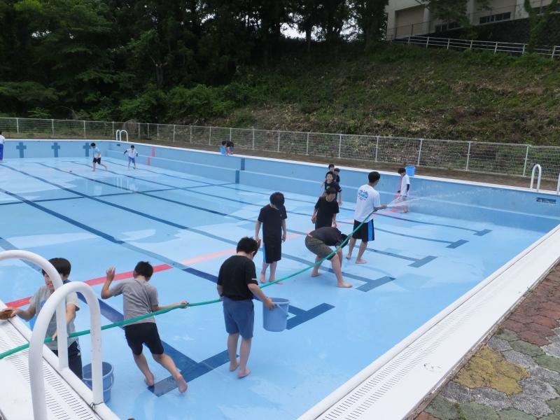 地域の方、CSの方も参加していただき、PTAの皆さんとプールの周辺を掃除していただきました。