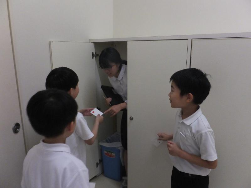 宝箱発見。カードに書かれている6年生を見つけて、サインをもらいます(*‘∀‘)