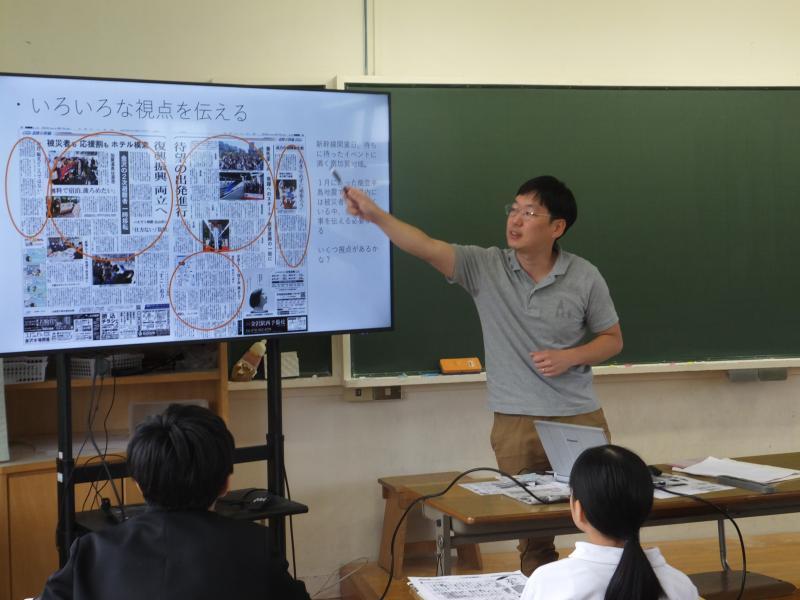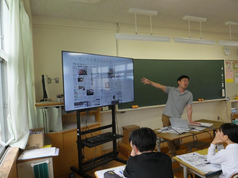 6月3日に北陸中日新聞社から2名の方に来ていただき、新聞の特徴や伝えるための工夫などを学びました。