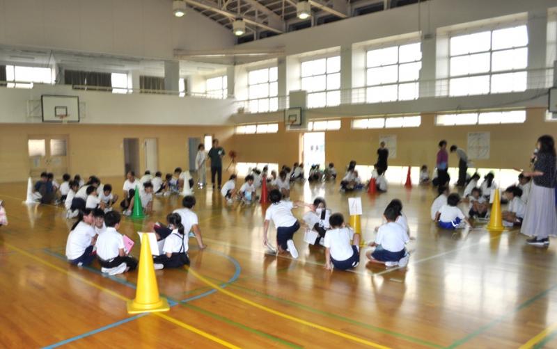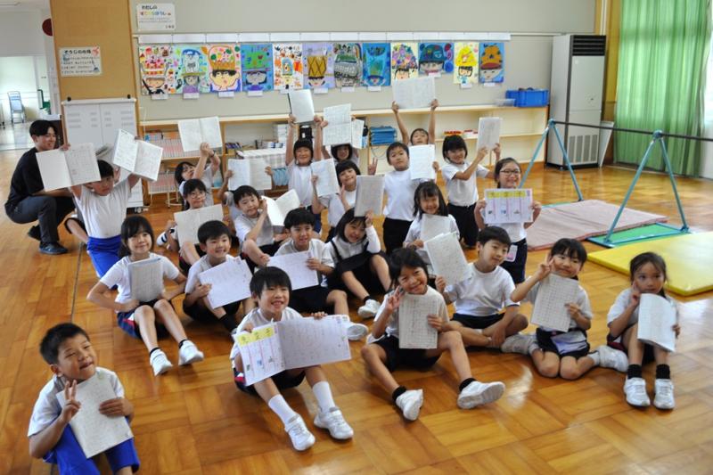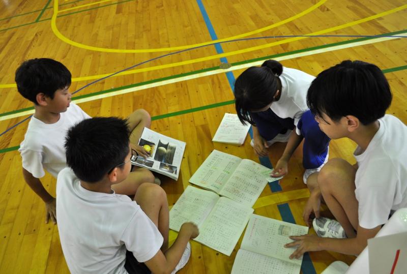 3~6年生は体育館で、1,2年生はなかよしスペースでノート交流を行いました。