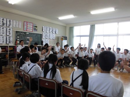 計画訪問でのひとこま 投稿日時 : 2017/07/03 校長 カテゴリ:総合学習 6月29日(木)に計画訪問があり、教育委員会からたくさんの方々が参観に来られました。5限には、5年生が「外国語活動」として、ALTのパメリーン先生ととっても楽しい授業を公開しました。何人もの方に、「河南小学校の子どもたちは、とってもあいさつが気持ちいいですね。」と褒められ、校長先生もうれしい気分になりました。 Tweet {{options.likeCount}} {{options.likeCount}} 0 コメント