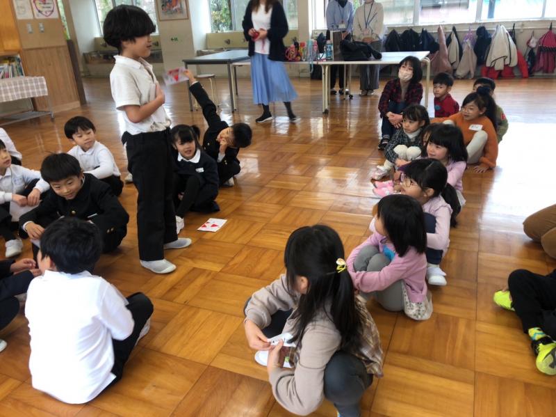 1年生は、来年度新入生となる河南保育所のみんなと一緒に遊びました。
