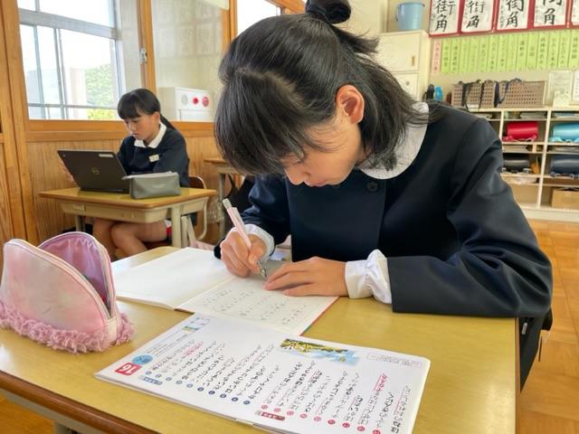 真剣に漢字のテストに取り組んでいる空気感がステキでした。誰1人あきらめずテストに向かっていました。