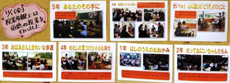 今日は学校保健員会にあわせて、道徳の授業を全学年とも保護者の皆様に見ていただきました。