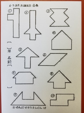 6,7,8月「Tパズルを作ろう」が、校長先生からの課題でした。