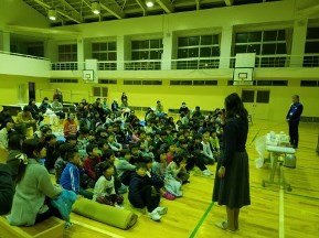 11月10日(金)に貝田先生を講師にお招きしてサイエンスショーが行われました。160人を超えるたくさんの保護者と子ども達の参加があり、大盛況でした。液体窒素を使った「マイナス200度の世界」では、花びらを凍らせたり、バナナで釘を打ったりと、テレビで見たような光景を実際に体験することが出来、あちこちで「お~!!」と言った驚きの声が聞こえました。見たり聞いたりすることも大切ですが、実際に触って感じることが出来た貴重な1時間でした。母親委員会の方々、どうもありがとうございました。