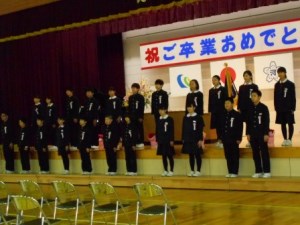 感動的な卒業式が終了しました。個性的な人が多かった6年生ですが、それぞれの個性を十分に生かし、この1年間で大きく成長しましたね。勉強はもとより、連合運動会や駅伝、サッカー大会など、どれも一生懸命に取り組みました。下級生にも優しく教えたりお世話したり、学校への奉仕活動も積極的に行ってくれました。そんな6年生が卒業するのはとっても寂しいですが、中学校でも小学校6年間で学んだことを生かし、力一杯活躍してください。卒業、おめでとう!