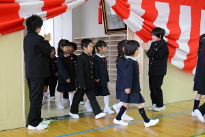 かわいいかわいい1年生がピカピカのランドセルに思いをいっぱいつめて入学してきました。担任から名前を呼ばれて、緊張しながらも元気に「はい!」と返事をしている姿がとてもかわいらしかったです。