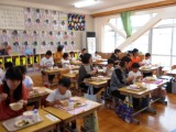 初めての学年行事です。おうちの人たちと一緒に給食を食べました。好き嫌い言わずにしっかり給食食べれたかな?その後は親子運動会ということで、綱引きやリレーを行いました。保護者の皆様は、お忙しい中PTA行事にご協力下さいましてありがとうございました。