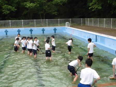 5,6年生がプール掃除をしてくれました。働き者ぞろいのおかげで、時間通りにバッチリきれいになりました。後半はお約束の水浴びタイム(笑)まだ少し寒いので風邪引かないでね・・・・