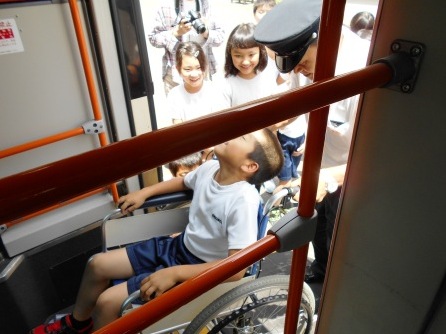 3年生が市バスの乗り方を教えてもらいました。また足の不自由な人がどのようにバスに乗るのか体験しました。これでもし困っている人がいたらすぐに助けられますね。