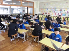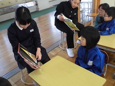 1年生に、6年生が朝自習の時間、読み聞かせをしてくれました。どの6年生もにこやかに読み聞かせをしてくれ、1年生はにこにこ顔です。朝の穏やかな、温かいひとときです。6年生の「おあしすの心」が感じられます。