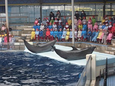 4月25日、1年生と2年生は松島水族館へバス遠足に行ってきました。あいにく雨が少し降っていましたが、イルカショーやペンギンのお散歩、魚とふれあい体験など十分楽しむことができました。お弁当もうれしそうに、自慢しながら食べていました。