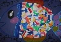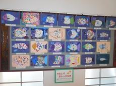 3年生が図工の時間に作った作品です。絵の具遊びをした後、その紙を切って構成し、すてきな魚を作りました。