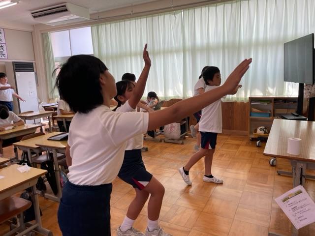 先週教えていただいた「新山中節」。昼休みに5年生の教室で踊りまくっていました٩( ᐛ )۶٩( ᐖ )۶