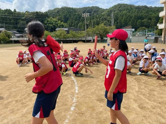 バトンの渡し方を連合運動会のリレーに出場したメンバーが、自主的に教えていました|•'-'•)وナイス!