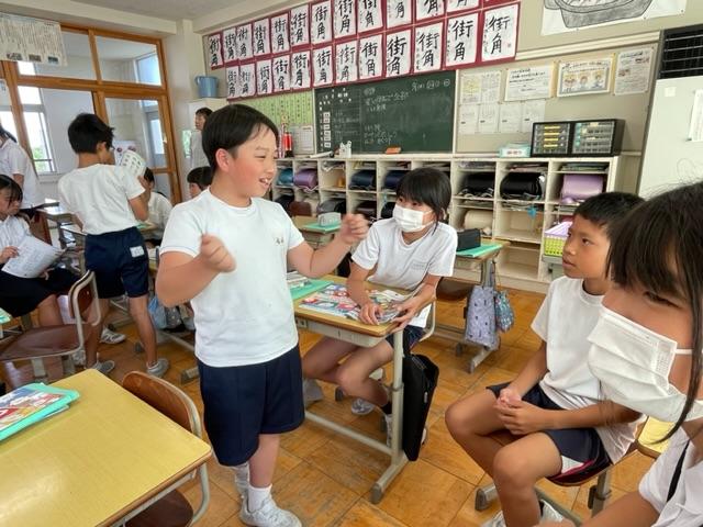 英語の授業では、ジェスチャーゲームをして生き物の英語での言い方を学びました(*^^*)