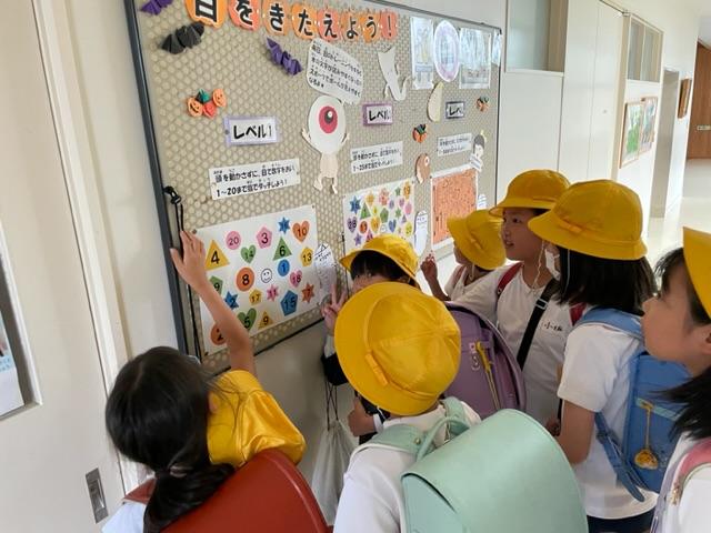 図工で絵を書いているようで、途中ですが作品が並べられていました。