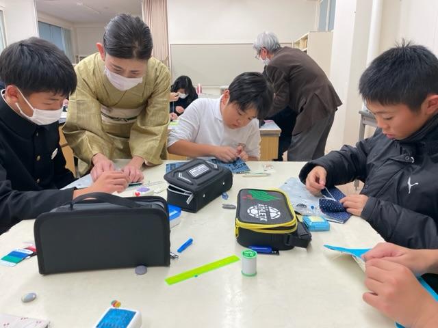 ものづくりマイスターの方たちにティッシュケースづくりを教えていただきました。