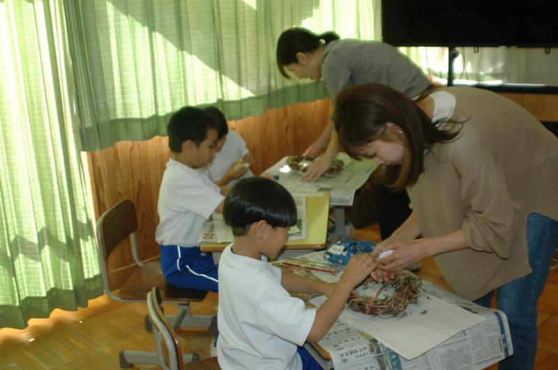 お手伝いにおうちの方にも来ていただき、楽しく材料を選んで自分だけのリースを作ったよ!材料も先生方がいっぱい集めてくれて~!とってもすてきなリースが完成!