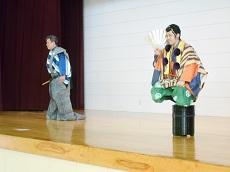 10月28日、大蔵流狂言師の茂山千五郎さん、井口竜也さんが来校され、狂言「柿山伏」を鑑賞しました。実際に、狂言独特の笑い方や泣き方を教えていただくこともでき、狂言の面白さをたっぷりと味わいました。