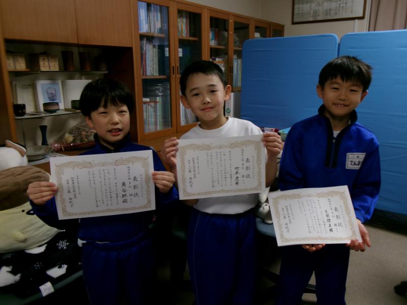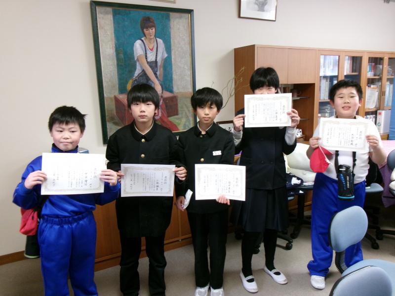 3学期、たくさん本を読んだ人の表彰を校長室で行いました。