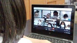 7月4日,本校と三井小学校,鵠巣小学校の3・4年生が,クロームブック(Meet)を使ってオンライン交流授業を行うことになり,この日,3・4年生が1・2年生相手に練習。地域で学んだことについて発表しました。映像も音声もとってもクリア。本番への期待と自信が膨らみました。