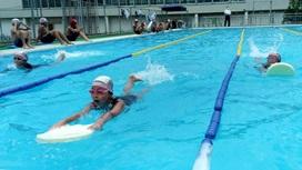 初日のこの日はとても暑い日となりました。今年はサンプルルで5日間学んだこともあり,児童たち,最初から絶好調。どんどん上手になっていきました。この日を入れて,水泳教室は4日間。その後には校内水泳記録会もあります。児童の皆さん,頑張って下さい。