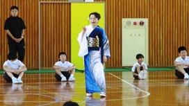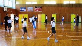 三夜踊り保存会の宮越さん,吉田さん,中室さんを講師に招き,鵠巣小学校の児童たちも一緒に,三夜踊りの練習を行いました。とても暑い日でしたが,みんなよく頑張りました。