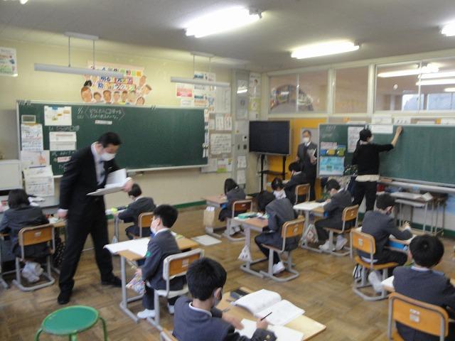 5限目3・4年生の複式授業を指導主事の先生と校内の先生方が参観しました。