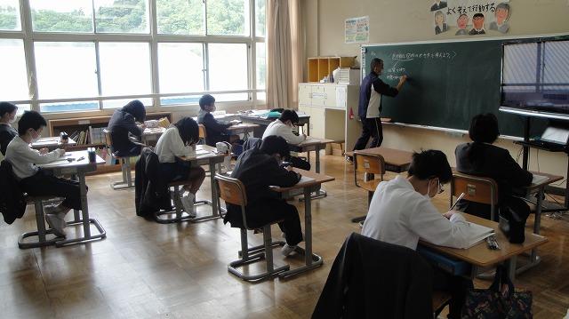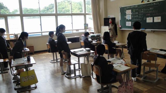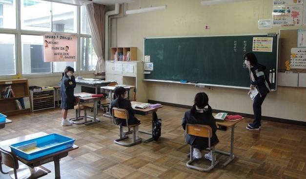 外国語の時間には、欧米に比べて日本の感染症感染率が少ないのは、あいさつの仕方や文化の違いが関係しているようです…というお話もありました。
